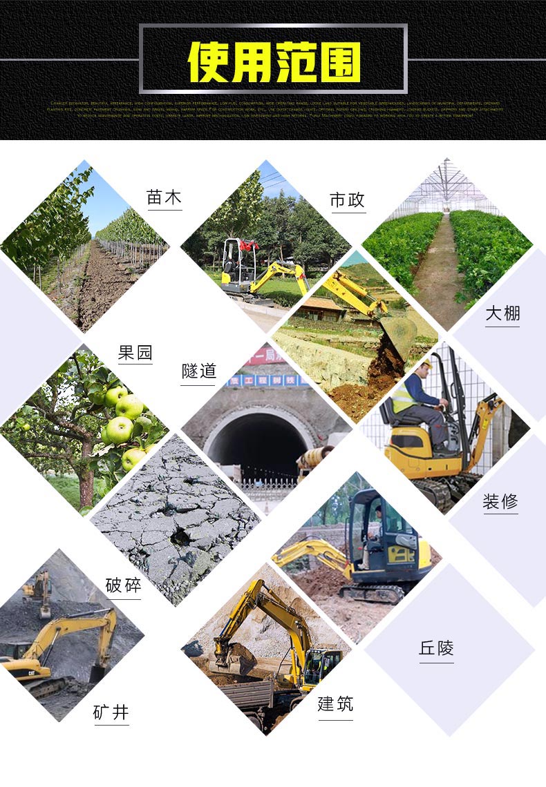山地承包方面,室內方面,破碎方面,果園方面,挖溝方面,園林綠化方面,礦井方面,蔬菜大棚方面,挖藥材方面等等。