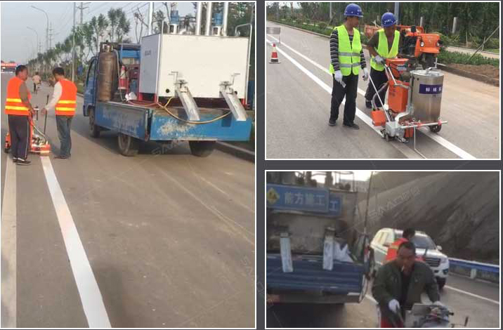 SA1200液壓雙缸熱熔釜是一款熱熔標線施工的主要設備之一。標線施工時,先利用熱熔釜將粉末狀涂料加熱,攪拌,直到熱熔變成液態后,再將涂料放入劃線機內進行劃線施工。